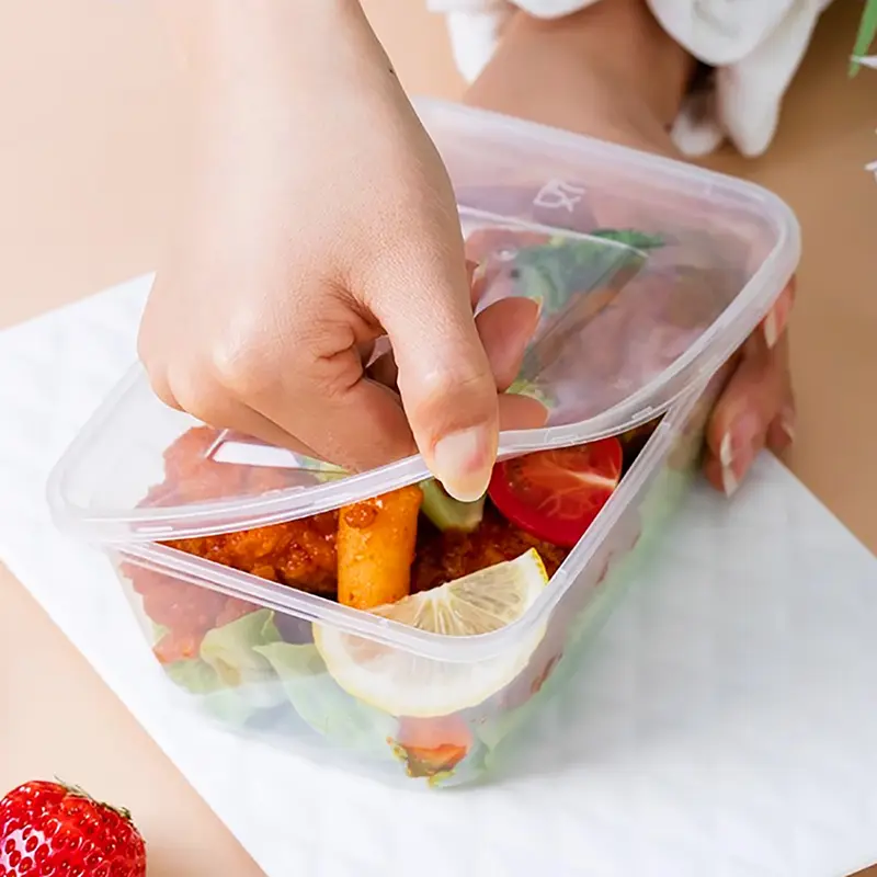 En los escenarios de vida y comedor de ritmo rápido, este recipiente de plástico rectangular transparente para alimentos de 750 ml se ha convertido en la opción preferida tanto para los comerciantes de comida a domicilio como para los usuarios domésticos. También está disponible en tamaños de 500 ml, 650 ml y 1000 ml, cubriendo con precisión diversas necesidades gastronómicas.